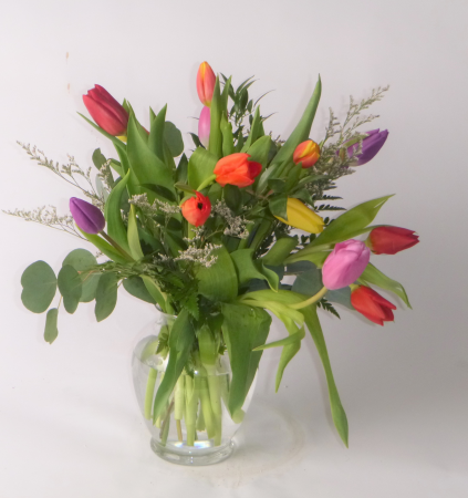 Nothing but fresh-cut tulips! Tulips are a great way to make someone's day, and because we work directly with the grower, no one's tulips are fresher. Send tulips for just about any occasion: bridal shower, baby shower, sweet 16, first date, you can't go wrong with tulips.* Includes a clear glass vase.